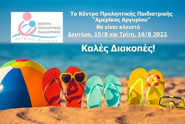 11-08-2022 Το Κέντρο Προληπτικής Παιδιατρικής Αμερίκος Αργυρίου σας εύχεται καλές διακοπές!...