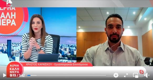 Φιλοξενία του του Χρίστου Καραίσκου Εργαστηριακού Επιστήμονα του Κέντρο στην εκπομπή ALPHA Καλημέρα