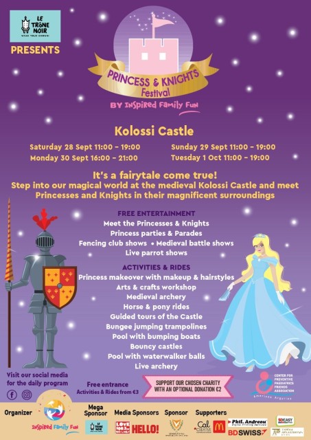07-09-2024 Princess & Knights Festival! Το μεσαιωνικό Κάστρο Κολοσσίου μεταμορφώνεται σε ένα παραμυθένιο σκηνικό και φιλοξενεί υπέροχες Πριγκίπισσες και Ιππότες για ένα μοναδικό τετραήμερο γεμάτο μαγεία, διασκέδαση, χορό και μοναδικές εμπειρίες για μικρούς και μεγάλους! Μεσαιωνικό Κάστρο Κολοσσί...