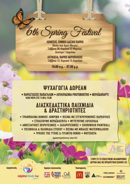 27-03-2024 6ο Ανοιξιάτικο Φεστιβάλ για τον Σύνδεσμος Φίλων Κέντρου Προληπτικής Παιδιατρικής "Αμερίκος Αργυρίου" Λεμεσός - 30, 31 Μαρτίου και 1 Απριλίου στο Δασικό Πάρκο Λεμεσού (δίπλα από την Αρχή Αδειών) από τις 10:00 μέχρι τις 19:00 Λευκωσία - 13 & 14 Απριλίου στο Πάρκο Ακροπόλεως από τις 10:00 μέχρι τι...